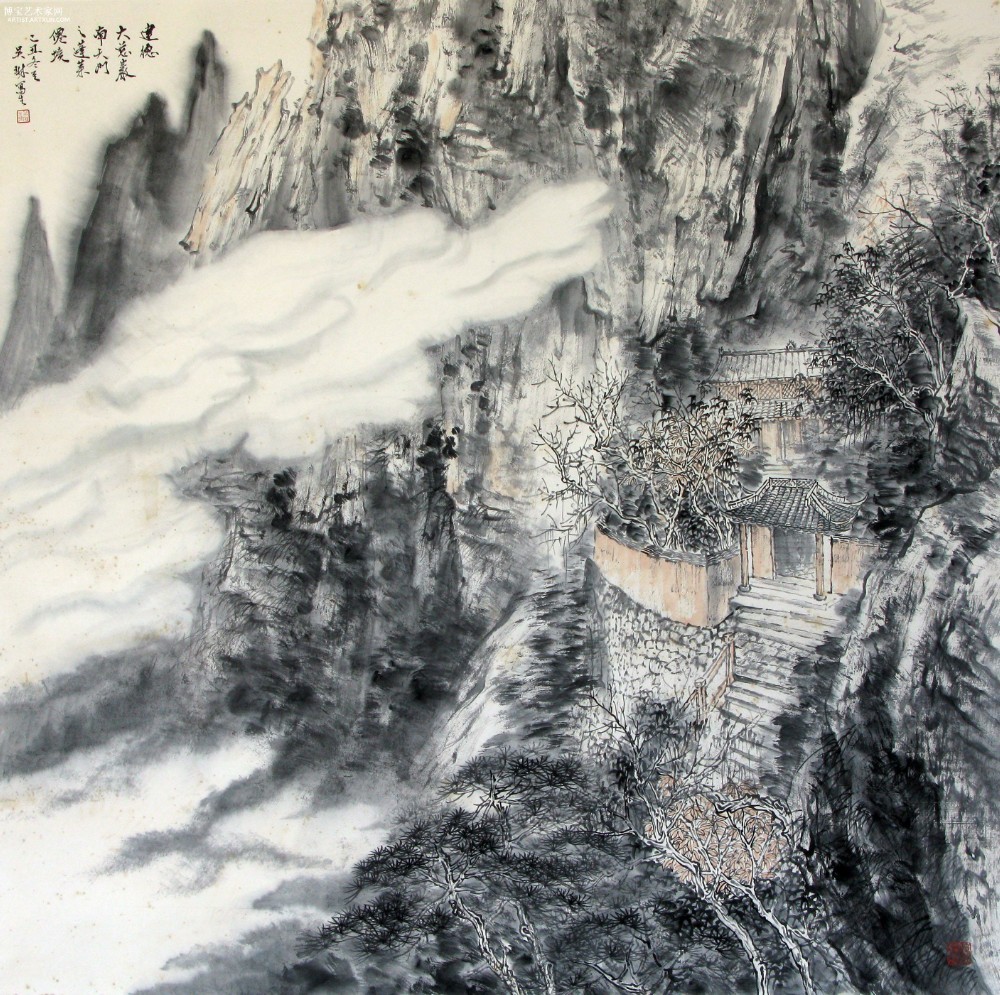 大慈岩南天门125*125cm(有画册出版) 吴琳作品笔灵墨透,通篇一体一气呵成,意境深远幽静,清奇灵透,墨法笔法精严,“师造化,得心源”可谓也。
